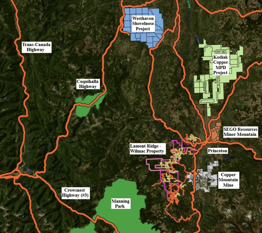 The Wilmac Property is strategically located within one of British Columbia’s most active mining districts, offering both excellent infrastructure and strong exploration potential. Its proximity to Princeton and Copper Mountain Mine makes it highly attractive for future development.