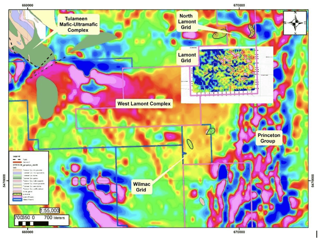 In 2024, soil sampling on the Lamont Grid returned a number of anomalous samples and, together with a small number of anomalous rock samples, led to an Induced Potential / Audio Frequency Magnetotelluric geophysical survey